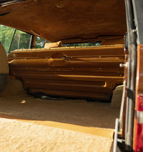 Inside, the brand new rich leather interior is a wonderful place to be. The deep tan ties in harmoniously with the mid 80's exterior in Russet Brown and the fluted, vertical stitching of the seats and deep pile new carpeting evokes the look and feel of both the 70's Suffix era cars and indeed the style of interior which continued into the 80's. Stitched into the underneath of the carpeting and foot wells is Dynamat sound deadening insulation to enhance the cabin experience and reduce road noise. All of the seats have been re-padded with new foam as well as being reupholstered.